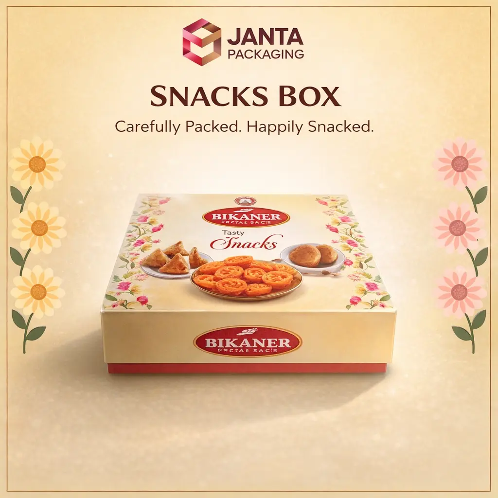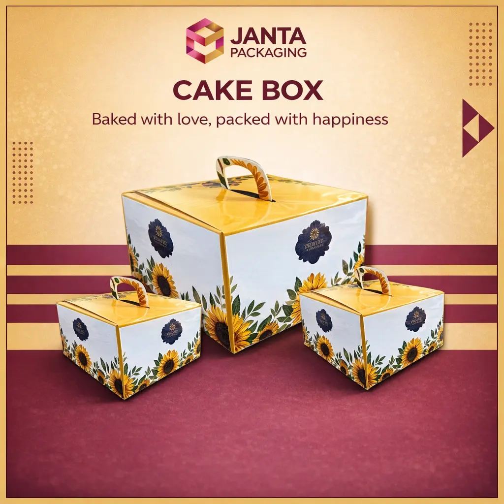 Janata Packaging offers a wide range of high-quality packaging products designed for safety, durability, and presentation. Our product range includes food-grade packaging boxes, snack and bakery boxes, cake boxes, Ghewar boxes, paper bags (including grease-proof options), and customized packaging solutions. Each product is carefully manufactured using eco-friendly materials to maintain freshness, hygiene, and strength. We cater to food, bakery, sweet shops, and retail businesses, delivering packaging that protects products and enhances brand value.